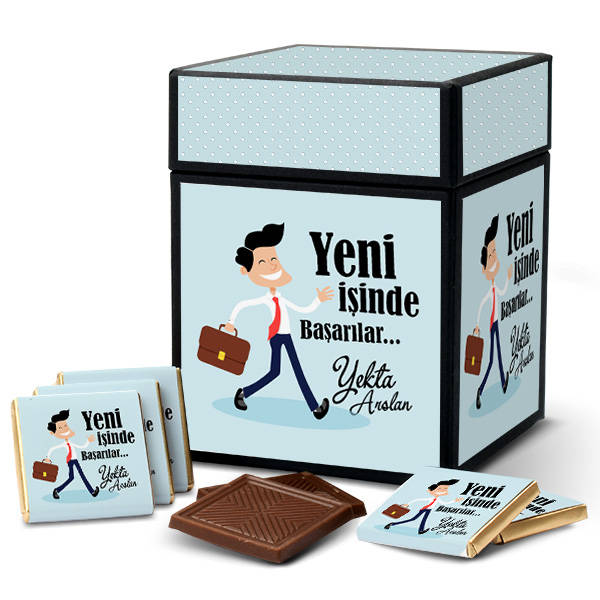Babanıza, eşinize veya erkek arkadaşlarınıza yeni işinde başarı dileklerinizi, kişiye özel olarak hazırlanan Yeni İşinde Başarılar Dilerim Çikolata kutusu ile göstermeye var mısınız? Yeni işine büyük bir iştahla başlayacak olan tüm erkek tanıdıklarınıza, en güzel ağız tatlılığı işte bu kutusunun içinde! İçerisinde 24 adet kişiye özel başarılar dileklerinizin yazılı olacağı sütlü çikolata bulunan Erkeğe Yeni İşinde Başarılar Dilerim Çikolatası, elinde çantasıyla mutlu bir şekilde işe giden erkek sembolü ile bir hayli sevimli.