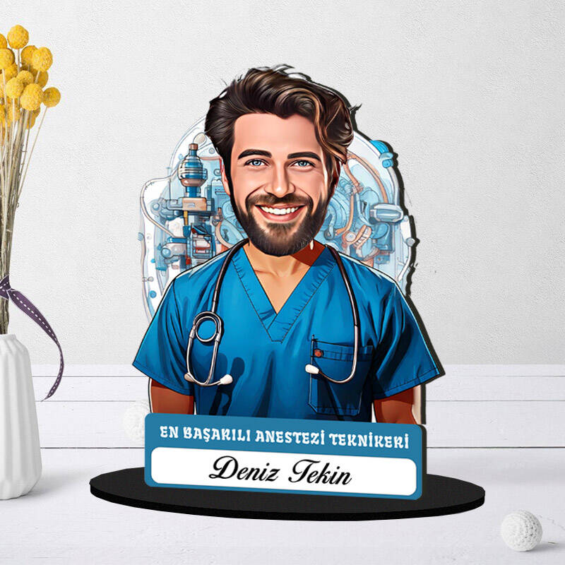 Kişiye Özel Erkek Anestezi Teknikerine Hediye Karikatürlü Biblo