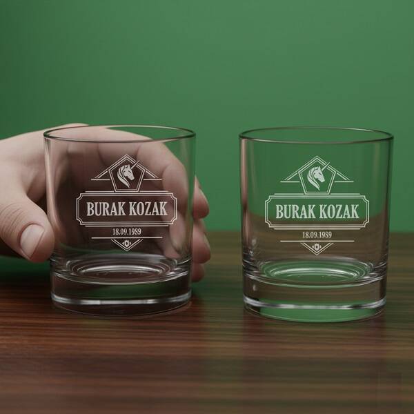 Erkek Arkadaşa Hediye İsimli ve Tarihli İkili Viski Kadehi