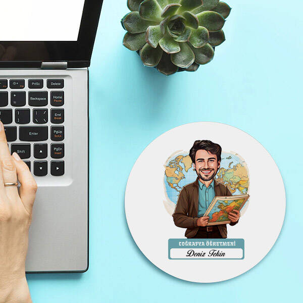 Dünyayı avucunun içi gibi bilen erkek coğrafya öğretmenleri için sınırları zorlayan bir hediye! Dağlar, denizler ve haritalar arasında geçen meslek hayatına, kendi karikatürünün olduğu bu mousepad ile eğlenceli bir durak ekliyoruz. Dijital haritaları incelerken veya iklim grafiklerini hazırlarken fareyi bu kaliteli zeminde kaydırmak ona büyük keyif verecek. Coğrafya hocanıza, dünyanın en uzak köşesinden bile daha değerli hissettirecek bu kişiye özel tasarımı hediye edin.