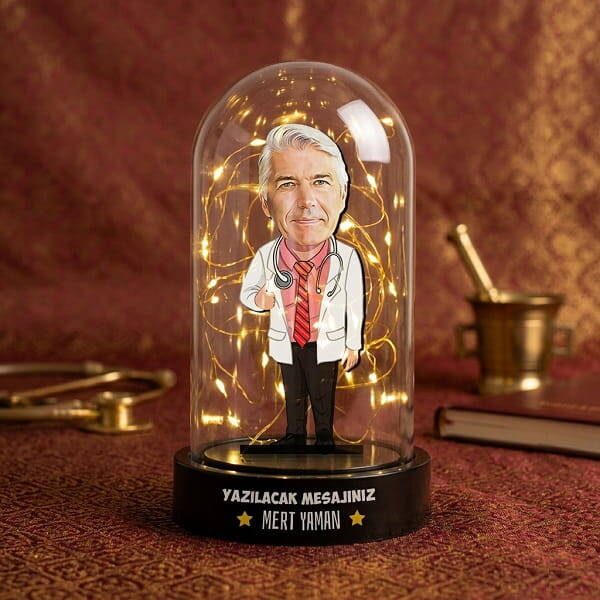Sağlık çalışanlarına saygı göstermek için harika bir hediye: erkek doktor karikatürlü işıklı fanus biblo. Bu fanus, sağlığın değerini ve doktorların özverisini yansıtarak bir teşekkür ifadesi sunar. İşıklar, iyileştirmenin umut dolu yanını hatırlatır.