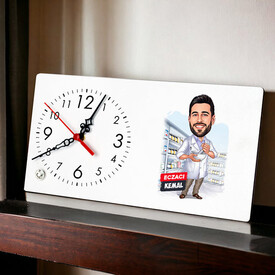 Erkek Eczacı Karikatürlü Şık Masa Saati