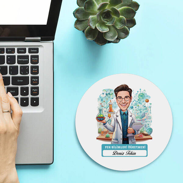Erkek Fen Bilimleri Öğretmeni Temalı Karikatürlü Mousepad