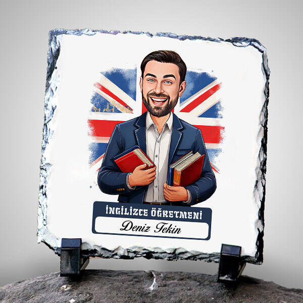 The pencil is on the table aşamasını çoktan geçtik; şimdi sıra "The best teacher is on the stone" demekte! İngilizce öğretmeninizin o modern ve vizyoner duruşunu, global bir mizah anlayışıyla bu taşa kazıdık. Masasında duran sözlüklerin yanında bu karikatür, onun için en değerli "vocabulary" olacak. Hem şık, hem komik, hem de çok "cool" bir hediye arayanlar için sınırsız bir iletişim köprüsü.