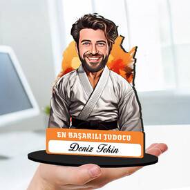 Judoya gönül veren sevdiklerinize özel, esprili ve unutulmaz bir hediye! Erkek Judocu Karikatürlü Biblo, güç ve zekâyı bir araya getiren bu dövüş sanatına tutkuyla bağlı olanlar için tasarlandı. Üzerinde sevdiklerinizin karikatürü ve ismi bulunan bu eğlenceli biblo, çalışma masalarına, spor salonlarına veya vitrinlere renk katacak. Sporcu dostlarınızı mutlu edecek bu kişiye özel biblo, hem anı değeri taşıyor hem de motivasyon kaynağı oluyor!
