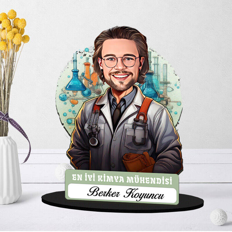 Erkek Kimya Mühendisi Karikatürlü Biblo Kimya mühendislerine özel hazırlanan bu karikatürlü biblo, mesleklerine olan bağlılıklarını ve başarılarını yansıtır. Erkek kimya mühendisinizin masasını süsleyecek bu yaratıcı tasarım, ona olan takdirinizi ve mesleki başarısını neşeli bir şekilde kutlayacak. Kişiye özel tasarımı ile bu biblo, ona kalıcı bir hatıra bırakacak.