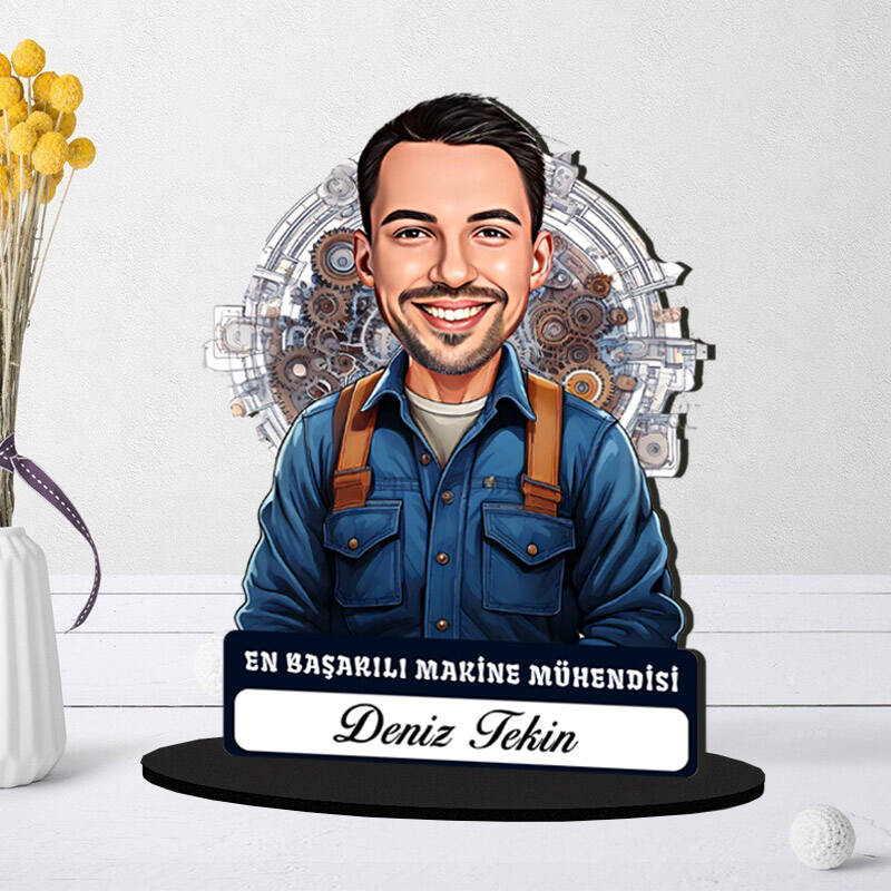 Dişli çarkların ve mühendisliğin ustaları için özel olarak tasarlanan Erkek Makine Mühendisi Karikatürlü Biblo, mesleklerine duyduğunuz hayranlığı en eğlenceli şekilde yansıtıyor. Karikatürlü ve kişiye özel tasarımıyla harika bir masa süsü olacak bu bibloyu kaçırmayın!