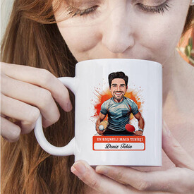 Erkek Masa Tenisçi Karikatürlü ve İsimli Kupa Bardak