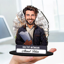 Erkek Mimar Karikatürlü Biblo Mimarlar için tasarlanmış bu karikatürlü biblo, hayal gücünün gücünü ve tasarımdaki başarısını yansıtır. Erkek mimarınıza hediye edeceğiniz bu özel biblo, onun ofisinde ya da çalışma alanında dikkatleri üzerine çekecek. Kişiye özel tasarımı ve karikatür baskısı, ona olan hayranlığınızı anlamlı bir şekilde ifade eder.
