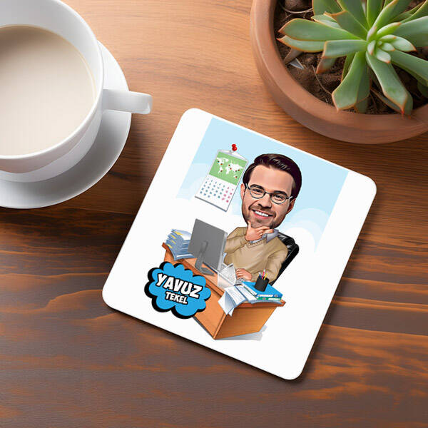 Ofis masanızı renklendirecek bir diğer seçenek: erkek muhasebeci karikatürlü bardak altlığı! Profesyonel şekilde hazırlanacak olan karikatürünüz, bardak altlığı üzerine capcanlı renklerle basılacak ve her çay içişinizde yüzünüzden gülümseme hiç eksik kalmayacak. Yeni ev hediyesi, ofis hediyesi veya sevdiklerinize sürpriz yapmak istediğinizde bu bardak altlıkları mükemmel bir alternatif olacak.