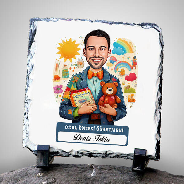 Minik adımların ilk büyük rehberi, oyunların baş mimarı olan o özel hocanız için devasa bir sürpriz! Okul öncesi eğitimin o kıpır kıpır dünyasını, taşın doğal ve ağırbaşlı dokusuyla dengeleyen bu hediye, öğretmeninizin odasına çok yakışacak. Karikatürün verdiği o sempatik enerji, çocuklarla geçen yoğun bir günün ardından ona en güzel dinlenme bahanesi olacak. Sınıfın en büyük çocuk ruhlu öğretmenine, en "oyuncu" hediye.