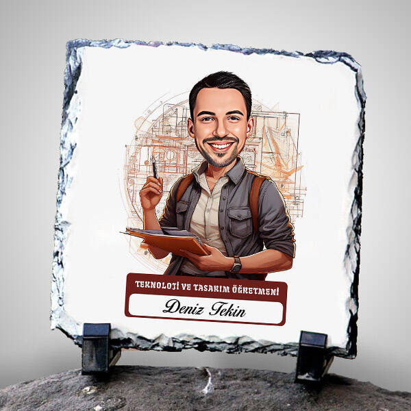Erkek Teknoloji Öğretmeni Temalı Karikatürlü Taş