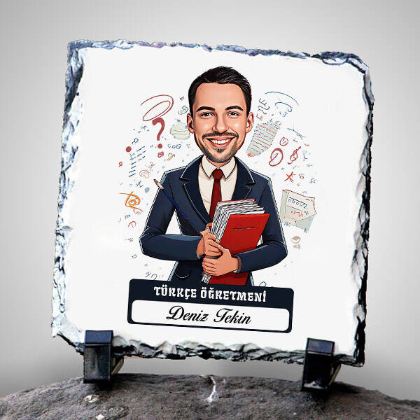 Kelimelerin efendisi, dilimizin koruyucusu hocanız için masasının en "anlamlı" köşesi boş kalmasın. Erkek Türkçe öğretmeninin o vakur ve bilge duruşunu, mizahın en güzel söz sanatıyla birleştirdik. Karikatürün verdiği o sıcak enerji, en ağır derslerin bile havasını bir anda değiştirecek. Onun için hazırlayacağınız bu taş, bir ömür boyu "anlatım bozukluğu" içermeyen, sapasağlam bir sevgi belgesi.