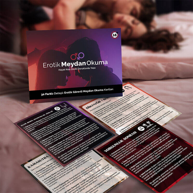 Erotik Meydan Okuma Kartları ile her anı sıradanlıktan kurtarın ve cinsel hayatınıza heyecan katın. Yalnızca yatak odasında değil, evin her köşesinde, günün her saatinde aşkı yeniden keşfedin. Sabahın ilk ışıklarıyla başlayan şehvet dolu bir oyun ya da gece yarısında karanlığın gizeminde kaybolan bir ihtiras... Bu kartlar, rutini bozup her anı unutulmaz kılmak için tasarlandı.Bu meydan okuma sizi baskı altına almaz; aksine, dilediğiniz zaman diliminde, kendi hızınızda ilerlemenize olanak tanır. İster 30 gün boyunca kesintisiz bir tutkuya dalın, ister bunu haftalara yayın, sonuç her zaman aynı: derinleşen bir bağ, artan bir arzu ve unutulmaz anılar.Özel olarak tasarlanmış bu kartlar, ilişki rutininizi tamamen değiştirirken, her dokunuşun ve her bakışın değerini yeniden keşfetmenizi sağlayacak. Kendinizi ve partnerinizi yeni yollarla keşfetmeye hazır mısınız? Cevabınız evetse, bu kartlar tam size göre!Görevlerden bazılarına gelince: Bir sabah güne şehvet dolu bir başlangıç yapın, gece yarısı karanlıkta sessiz bir tutkuyu paylaşın ya da mutfakta yemek yaparken birbirinizi baştan çıkarın. Her biri sizi ve partnerinizi yeni deneyimlere sürükleyecek, cinselliğinizi yeniden tanımlamanıza olanak tanıyacak.Bu oyun, size sıradanlığı unutturacak ve tutkunuzu her zamankinden daha güçlü bir şekilde alevlendirecek. Gizlilikle teslim edilen Erotik Meydan Okuma Kartları, Türkiye’nin her yerine gönderilebiliyor. İçinde barındırdığı 30 cesur görevle sizlere sadece bir oyun değil, aynı zamanda bir keşif yolculuğu sunuyor.Bu oyunun sonunda aranızdaki ateşin hiç sönmediğini ve iletişiminizin çok daha derinleştiğini hissedeceksiniz. Kendinizi ve partnerinizi yeniden tanımanın, keşfetmenin ve zevk almanın vakti geldi. Hazır mısınız? Erotik Meydan Okuma Kartları ile bu maceraya atılın ve her günü bir başka tutkuyla yaşayın!