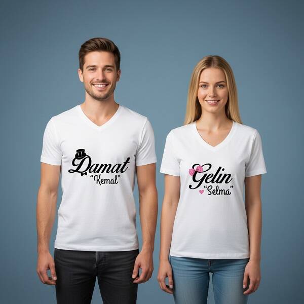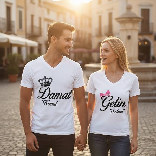 Mükemmel bir evliliğin sırrı, erkek - kadın çiftlerin mükemmel uyumunda saklıdır. Siz de evlilik öncesinde, sevgilinizle şahane uyumunuzu kıyafetlerinizle herkese göstermek ister misiniz? İşte karşınızda, üzerinde damat ve gelin figürleri yer alan Kişiye Özel Gelin ve Damat Sevgili Tişörtü! Hem şık, hem de yaz ayları için son derece rahat bir kıyafet alternatifi olan Gelin ve Damat Tişörtleri ile sevgilinize güzel bir sürpriz yapabilirsiniz.