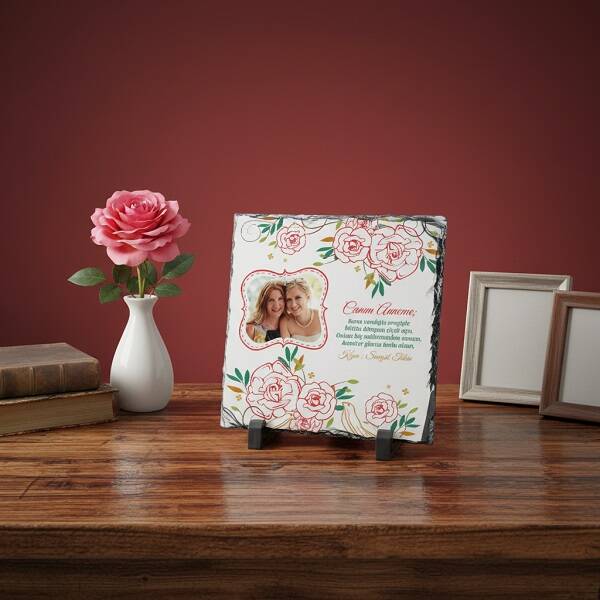 Kırları ve bahçeleri çiçekler nasıl ki güzel hale getiriyorsa; biricik annemiz de mutlu yuvamızı renklendiren en güzel çiçektir. "Benim Çiçek Annem" diye öpüp sevdiğiniz sevgili annenize, bu anneler gününün en kalıcı hediyesini mi vermek istiyorsunuz? O halde gül motifleri ile süslenmiş ve üzerine fotoğrafınız ve mesajınızın basılacağı Kişiye Özel Gül Motifli Çiçek Annem Taş Baskı tam aradığınız şey! Annenize, gönlünüzdeki en özel yeri kalıcı olarak hatırlatacak bu özel hediye ile sevgili annenizi çok mutlu edeceksiniz!