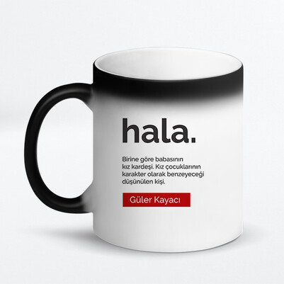 1 -) Kupa bardak üzerindeki baskı resimler veya yazılar 40 - 80 derecede yıkamaya dayanıklıdır. Ancak, daha uzun süreli kullanım için ELDE yıkanması tavsiye edilir.2 -) Özel tasarım bu kupa bardağın Beyaz ve Sihirli Kupa olmak üzere 2 farklı modeli bulunmaktadır.3 -) Sihirli Kupa Bardak sipariş vermek için "Model Seçiniz" alanından Sihirli Kupa modelini seçmeniz gerekmektedir.4 -) Materyal: Kupa Bardak Porselen malzemeden üretilmiştir.5 -) Bu kupa bardağı size veya sevdiklerinize özel hale getirebilmemiz için, SEPETE EKLE Butonu üzerinde yer alan kişiselleştirme alanlarını doldurmalısınız.6 -) Hala Kime Denir İsimli Kupa Bardak hafta içi saat 14.00'a kadar verilecek siparişlerde aynı gün kargoya teslim edilmektedir.7 -) Sihirli Kupa Nedir? İçerisine sıcak içecek konulduğunda yavaş yavaş renk değiştiren ve üzerindeki baskıyı gösteren kupa modelidir.8 -) Dilerseniz bu özel kupanın sihirli bardak modelini küçük bir fiyat farkıyla satın alabilirsiniz.Ürün Etiketleri