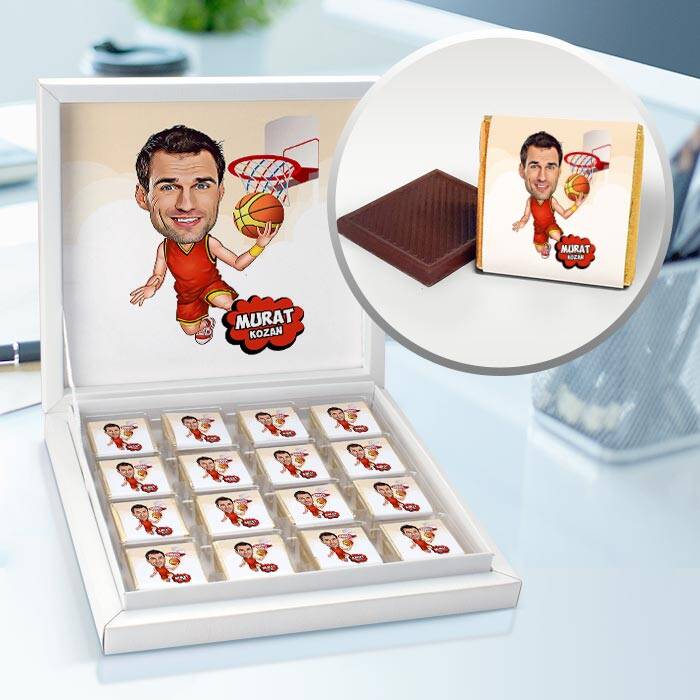 Saha içinde performansıyla parlayan harika basketbolcuya özel bir hediyeyle tebrik etme zamanı! Kendi karikatürüyle süslenmiş çikolatalar, hem lezzetli atıştırmalıklar hem de spor tutkusunun tatlı bir ifadesi olacak.