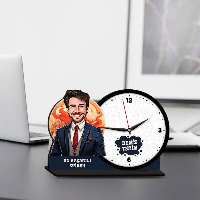 Kameralar karşısında haberleri ve olayları ustalıkla sunan erkek spiker arkadaşınız için, "Erkek Spiker Karikatürlü MDF Masa Saati" hem mesleğine saygı duruşu niteliğinde hem de son derece esprili bir hediye seçeneği sunuyor. Karikatür detayıyla kişiselleştirilebilen bu saat, sadece zamanı değil, aynı zamanda onun profesyonel yolculuğunu ve neşeli kişiliğini de yansıtıyor. Mikrofonu ve sahneyi sevenler için tasarlanan bu eşsiz ürün, ofis masasının en gözde parçası olmaya aday.