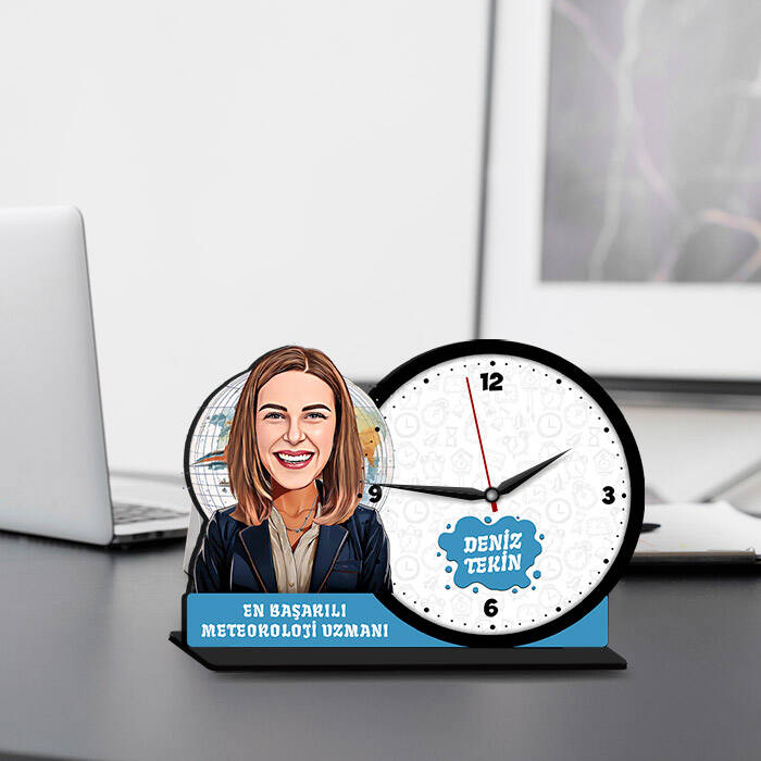 Kadın Meteoroloji Mühendisi Karikatürlü MDF Masa Saati