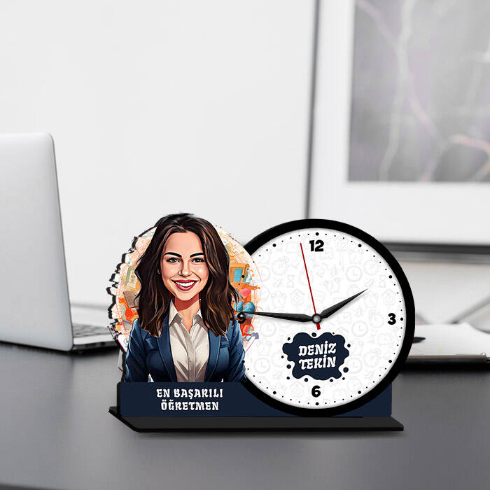 Öğrencilerinin hayatına dokunan, onlara ilham veren kadın öğretmenler için, "Kadın Öğretmen Karikatürlü MDF Masa Saati" hem anlamlı hem de son derece şık bir armağan. Kitaplar, kalemler ve öğretim materyalleriyle süslenmiş bu özel tasarım, onun mesleğine olan tutkusunu ve özverisini en güzel şekilde yansıtıyor. Kişiye özel karikatür detayıyla bu saat, masasına hem sıcaklık hem de neşe katacak. En hızlı teslimat ve kolay iade seçenekleriyle gönül rahatlığıyla sipariş verebilirsiniz.