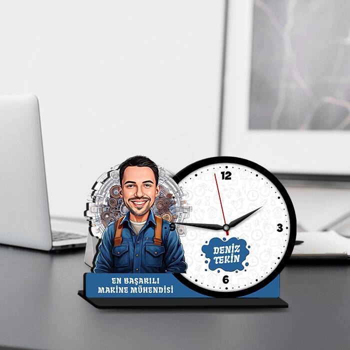 Makine mühendisi arkadaşınızın çalışma masasına biraz mizah ve kişisellik katmaya ne dersiniz? "Erkek Makine Mühendisi Karikatürlü MDF Masa Saati", ciddiyetle yaratıcılığı bir araya getirerek, sadece zamanı gösteren bir araç olmaktan çıkıp, odaya karakter katan bir objeye dönüşüyor. Bu özel tasarım, yoğun ve stresli iş günlerinde tebessüm ettirecek küçük bir detay arayanlar için ideal. Üstelik kişiye özel dokunuşlarla bu saati tamamen ona özel hale getirebilir, hem kullanışlı hem de unutulmaz bir hediye verebilirsiniz.