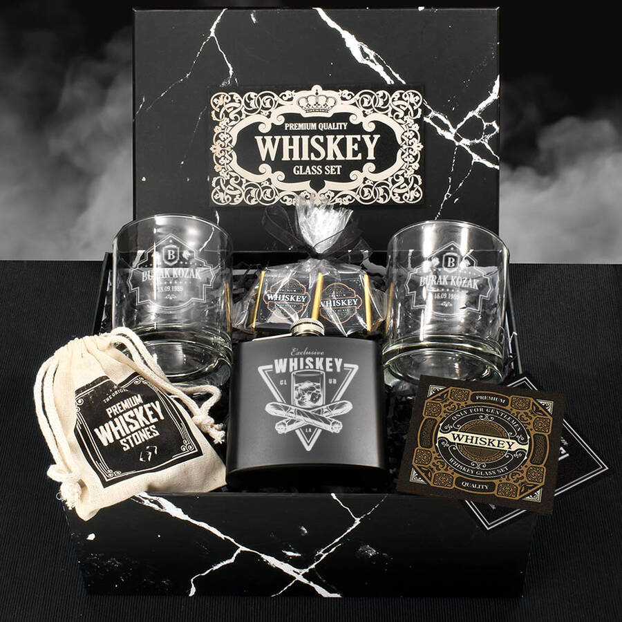 Hediyelik Viski Bardakları ve İçki Matarası Konsept Kutusu