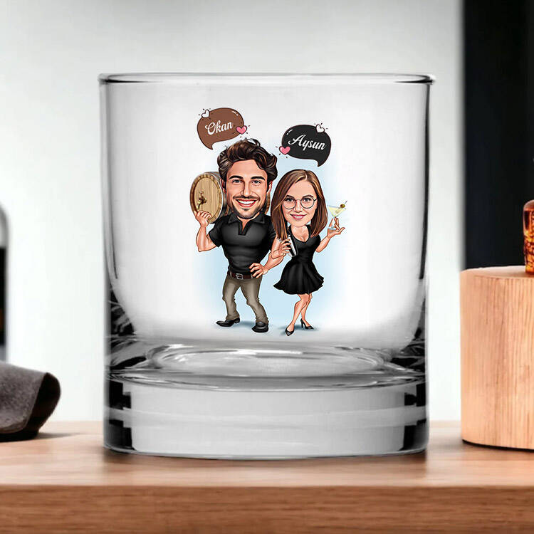 İçmeyi Seven Çiftler Karikatürlü Viski Kadehi