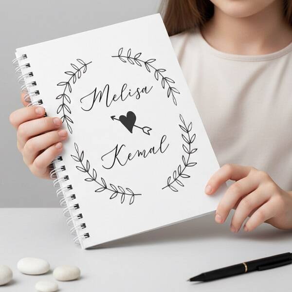 1 -) 50 adet çizgisiz sayfalardan oluşan spiralli defterin ölçüleri 18 X 12,5 cm.dir.2 -) Sevgili defteri kapağı, kaliteli HDF malzemeden yapılmış olup, pürüzsüz ve parlaktır.3 -) Ürün kişiselleştirme defter kapağı üzerine kalıcı bir baskı tekniği olan süblimasyon yöntemi ile yapılmaktadır.4 -) İsme özel defter kapağını size özel hale getirebilmemiz için siparişiniz esnasında ürün kişiselleştirme alanlarını doldurmanız gerekmektedir.5 -) İsme özel sevgili defteri 50 adet kaliteli çizgisiz sayfadan oluşmaktadır.6 -) Şiir veya hikaye yazmak, gazete kupürleri ile süslemek ya da sevgili günlüğü tutmak için idealdir.7 -) Defterin spiral telleri ( Kapağı ve sayfaları spiral tel ile tutturulmuş) sayfalarının daha rahat çevirilmesine ve daha kolay yazım imkanı sağlar.8 -) İki İsimli Zarif Sevgili Defteri, hafta içi saat 14.00'a kadar verilecek siparişlerde aynı gün kargoya teslim edilmektedir.Ürün Etiketleri