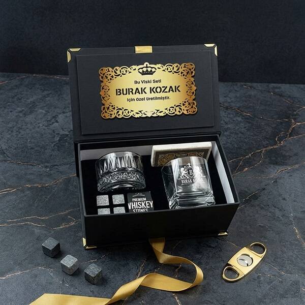 1 -) Fantezi siyah renkte özel bir kutu içerisinde gönderilmektedir. Kutu ölçüleri: 9,5 X 12,5 cm.2 -) Set içerisinde yer alan viski bardağı üzerine isim lazer ile kalıcı şekilde işlenmektedir. 8,5 cm X 9,5 cm genişliğindedir. Hacim 210 cc.3 -) Set içerisinde 1 adet Viski Bardağı + Kese içerisinde 4 Adet Viski Taşı + 1 Adet özel tasarım TAŞ bardak altlığı ve 1 Adet Cam çerezlik yer almaktadır.4 -) Viski tüketen sevdiklerinize harika bir hediye seçeneğidir.5 -) Lüks Viski Hediye Kutusu hafta içi saat 14.00'a kadar verilecek siparişler için aynı gün kargoya teslim edilmektedir.Ürün Etiketleri
