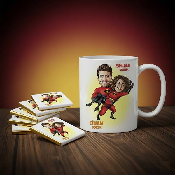 İnanılmaz Çiftler Karikatürlü Kupa ve Çikolata