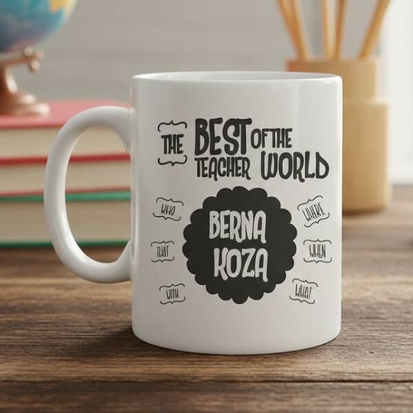 The Best Teacher of The World. "Bir lisan, bir insan" sözünü hepimiz biliriz. İyi bir İngilizce ise yaşadığımız çağ için milyarlarca insan demek! Siz öğrencilerine Dünya Vatandaşı olmak yolunda İngilizceyi en iyi şekilde öğretmeye çalışan Biricik İngilizce Öğretmeninize, sürpriz bir hediye ile teşekkür etmek ister misiniz? İsmine özel olarak hazırlanacak İngilizce Öğretmenlerine Özel Kupa Bardakla, 24 Kasım Öğretmenler Gününün en anlamlı hediyesi sizi bekliyor.