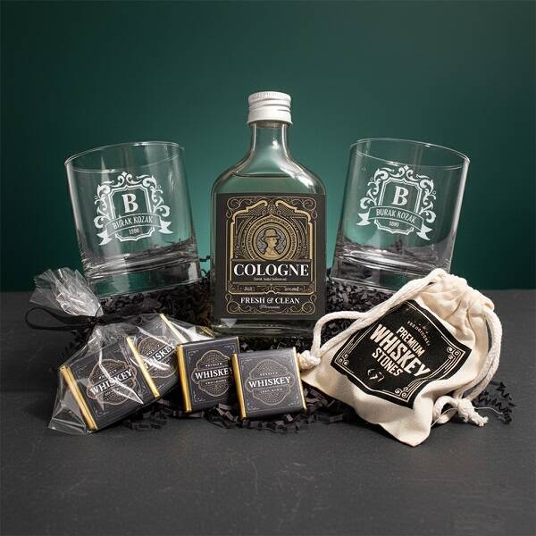 İsim Yazılı İkili Viski Bardağı ve Kolonya Hediyelik Set