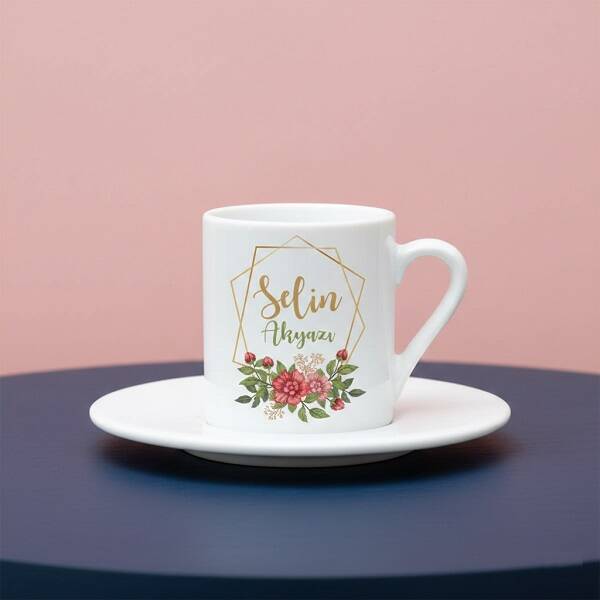 İsme Özel Çiçek Motifli Kahve Fincanı