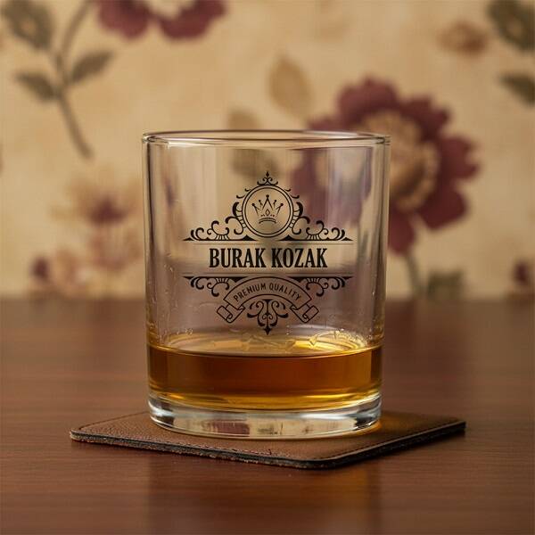 İsme Özel Geleneksel Motifli Desen İşlemeli Viski Bardağı