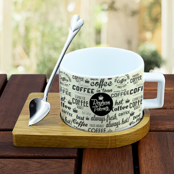 İsme Özel Kaşıklı Lüks Kahve Fincanı