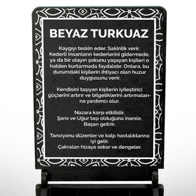 Beyaz Turkuaz taşı son yıllarda popülerlik kazanan bir doğal taştır. Hem estetik görüntüsü hem de sahip olduğu faydaları nedeniyle tercih edilen bir taş olan Beyaz Turkuaz, birçok kişi tarafından özellikle kolye olarak kullanılmaktadır.