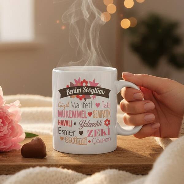 Sevgilinize duyduğunuz o yüksek sevginin nedeni ne acaba? Belki çok sevimli diye aşık oldunuz, belki çok zeki ya da muhteşem bir gülümsemeye sahip olduğu için, belki de inanılmaz derecede iyi kalpli olduğu için! Siz sevgilinizin en çok hangi yönlerini seviyorsunuz? Sevgilinizi tanımlayabileceğiniz ya da sevgilinizde beğendiğiniz 8 farklı özelliği üzerine taşıyabileceğiniz İşte Benim Sevgilim Kişiye Özel Kupa Bardak karşınızda.