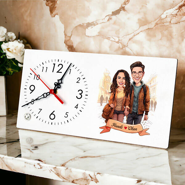Aşk sadece romantik değil, aynı zamanda eğlenceli olmalı! Sevgilinizle en tatlı anlarınızı yansıtan bu karikatürlü masa saati, ona her baktığında içini ısıtacak. Mizah ve sevgiyle dolu bir hediye arıyorsanız, işte tam da bu! Zamanı unutturacak kadar güzel bir sürpriz yapmaya ne dersiniz?