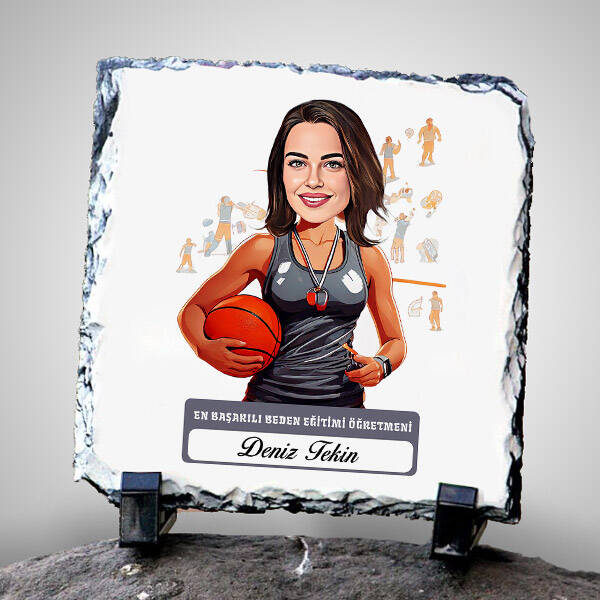 Kadın Beden Eğitimi Öğretmeni Temalı Karikatürlü Taş