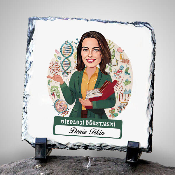 Kadın Biyoloji Öğretmeni Temalı Karikatürlü Taş
