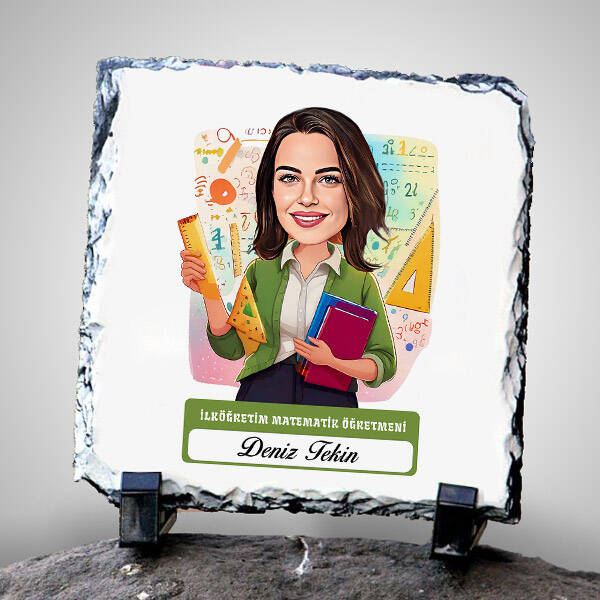 Kadın İlköğretim Matematik Öğretmeni Temalı Karikatürlü Taş
