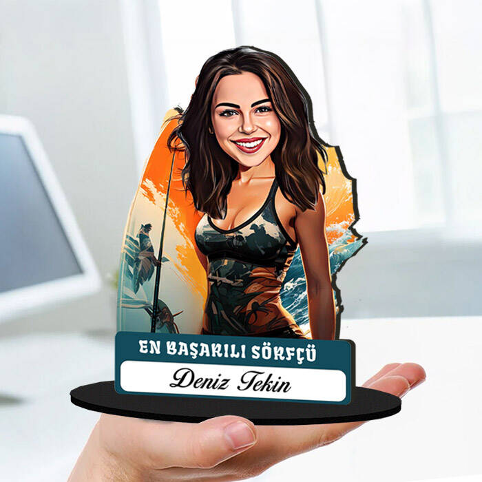 Dalgaların özgürlüğüne âşık birine alınabilecek en anlamlı hediye, onun tutkularını yansıtan özel bir objedir! Kadın Sörfçü Karikatürlü Biblo, denizle iç içe yaşamayı seven, sörfü bir yaşam biçimi haline getirmiş kadınlar için özenle tasarlandı. Kişiye özel karikatür ve isim baskısıyla hazırlanan bu biblo, sevdiklerinizin masasına veya raflarına tropik bir enerji katacak. Hem eğlenceli hem de anlamlı bir hediye alternatifi!