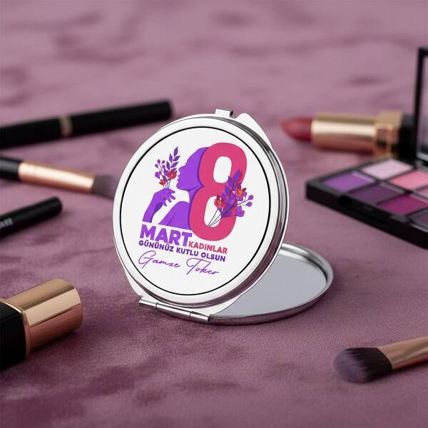 Kadınlar Günü Mesajlı Tasarım Makyaj Aynası