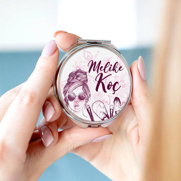 Kadınlara Özel İsim Yazılı El Makyaj Aynası