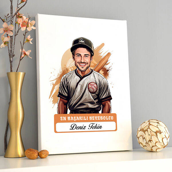 Karikatürlü En Başarılı Erkek Beyzbolcu Kanvas Tablo