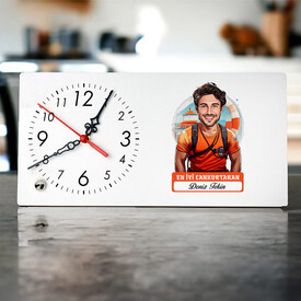 1 -) Masa Saati MDF malzemeden yapılmış olup 16 x 30 cm. Ölçülerine sahiptir.2 -) Ürünü size özel hale getirebilmemiz için; siparişiniz esnasında "Sepete Ekle" butonu üzerinde yer alan kişiselleştirme alanlarını doldurmanız gerekmektedir.3 -) Karikatürlü Masa Saati, hafta içi saat 14:00'a kadar verilen siparişlerinizde aynı gün kargoya teslim edilmektedir.4 -) Lütfen Dikkat; karikatür çalışmasının daha kaliteli olabilmesi için yükleyeceğiniz fotoğrafın ön cepheden çekilmiş olmasına ve net bir fotoğraf olmasına önem gösteriniz.5 -) Ürün yüzeyindeki çalışma elle bir karikatür çizimi olmayıp, bilgisayar programları aracılığıyla karikatür çalışması yapılmaktadır.Ürün Etiketleri