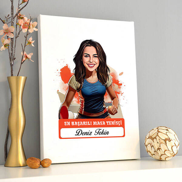 Raketi kadar tarzıyla da fark yaratanlara özel bir tablo: Karikatürlü En Güzel Masa Tenisçisi Kanvas Tablo! Sevdiklerinizin spor aşkını bu eğlenceli karikatürle ölümsüzleştirebilirsiniz. Kişiye özel hazırlanmasıyla, özel günlerin en renkli hediyesi olmaya aday.