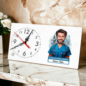 Zamanla birlikte hatıralar biriktiren karikatürlü masa saati, sevdiklerinize kalıcı bir hediye sunar. Hastalarının huzurla uyumasını sağlayan erkek anestezi teknikeri sevdiklerinize özel tasarlanan bu masa saati, mesleğine eğlenceli bir dokunuş getiriyor.
