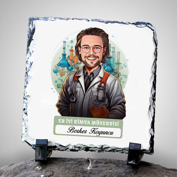 Karikatürlü En İyi Erkek Kimya Mühendisi Dekoratif Taş